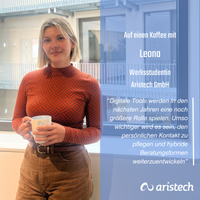 Seit knapp zwei Jahren ist Leona Teil des Aristech-Vertriebsteams und bringt ihr Sprachgefühl aus dem Germanistikstudium in die Welt der KI-Lösungen ein. Im Gespräch erzählt sie, wie sie komplexe Technologien verständlich macht, warum Kommunikation im Sales genauso wichtig ist wie Technikverständnis – und weshalb Teamgeist und bunte Ideen im Alltag für sie unverzichtbar sind.